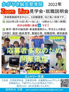 0106A60A-0507-42B8-BA01-FB4234D73C6622.02.25 TweetPocket 鍼灸就職説明会を開催しました! »関連記事 2021.09.15 昨日は出張でした 2021.08.13 見学ツアー 2021.09.22 今週は予定がいっぱい!!! 2021.08.01 いよいよ8月 2022.06.18 HPリニューアル! 2022.07.28 ゲリラ豪雨